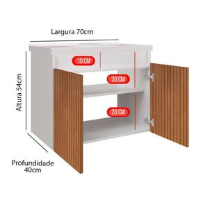 O Armarinho de Banheiro 2 Portas Sem Pia Perseu possui medidas montadas de 54cm de altura, 70cm de largura e 40cm de profundidade.