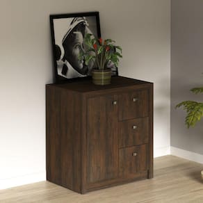 O Armário 03 Gavetas e 01 Porta para Home Office ME4111 Rústico é a escolha certa para seu escritório, pois, possui 03 gavetas com corrediças metálicas e 01 porta com dobradiça metálica. As costas do móvel contém cor que pode ser usado para dividir ambientes. Sua estrutura em MDP de 15 mm tornando o produto mais resistente. Compre já!
