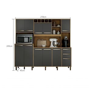 Seu tamanho de 2,00 m de altura e 2,18 m de largura permite acomodar vários itens de maneira organizada e melhor, além de possuir espaço para micro-ondas em seu nicho lateral, deixando tudo no seu devido lugar. Tenha uma cozinha completa em um só produto, medidas ideias e acabamento fino com matéria prima de alta qualidade deixando sua cozinha muito mais elegante e bonita.