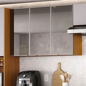 O Armário Aéreo 3 Portas de Vidro 120cm Lumina é um móvel com design moderno e com alto padrão de acabamento e beleza. Seu corpo é fabricados 100% em MDF e acabamento em pintura UV, tornando-se um armário aéreo capaz de resistir ao uso diário, fornecendo durabilidade e um acabamento atraente ao móvel.