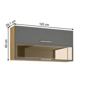 Armário 2 Basculante c/ vidro 120 cm Ametista Freijó Gris - Marrom