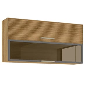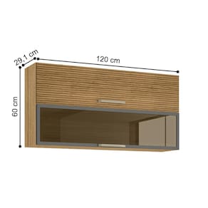 Armário 2 Basculante c/ vidro 120 cm Lapis Freijó Ripado Gris - Freijó | Gris | Marrom