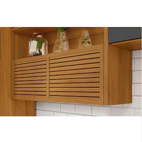 A cozinha Nesher Princesa tem design contemporâneo, robusto e é muito pratica. Inspirada em cozinhas planejadas, está disponível em módulos, permitindo composições variadas, projetos exclusivos, conforme o espaço e o gosto do consumidor. O armário aéreo de 2,00, foi projeto com uma porta articulada ripada, que traz aconchego, grande beleza e harmonia ao conjunto. Este mesmo armário possui montagem Flex, podendo o armário de geladeira/depurador ser posicionado a direita ou a esquerda na primeira montagem. Disponível em duas cores de porta, como o corpo sempre amadeirado. Projetada para proporcionar praticidade e funcionalidade no uso diário, produzida com matérias prima e ferragens tecnológicas de última geração. Todo o projeto foi pensado para embelezar sua cozinha com muita praticidade no uso e muita qualidade e durabilidade no dia a dia.