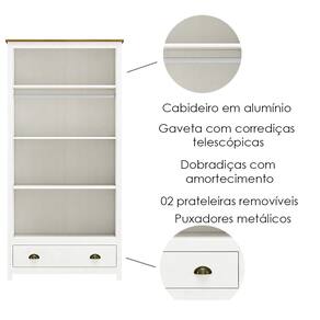 Peso Suportado: Prateleiras 10Kg, gaveta 05Kg e cabideiro 08Kg distribuídos