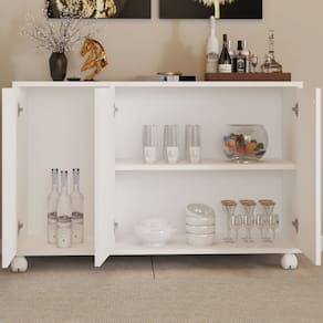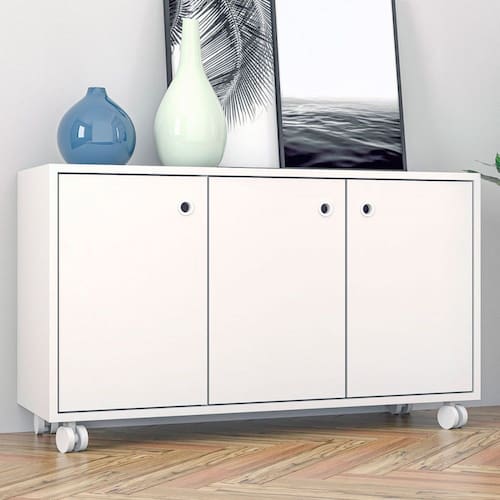 - Espessura da Estrutura: 12 mm - Possui Gavetas?: Não - Possui Portas?: Sim - Quantidade de Portas: 3 - Material da Porta: MDP - Espessura da Porta: 12 mm - Tipo de Porta: Portas de Bater - Material das Dobradiças: Aço - Possui Vidro?: Não - Possui Espelho?: Não - Possui Prateleiras?: Sim - Quantidade de Prateleiras: 1 - Peso Suportado nas Prateleiras:: 6 Kg - Possui Puxadores?: Sim - Material do Puxador: Plástico - Possui Ripamento?: Não - Linha ou Coleção: PNR 25-06 - Montagem Invertida?: Não Pode ser Montado Invertido - É frágil?: Sim - Possui Nicho?: Não - Material da Estrutura: MDP - Escala de Brilho: Fosco - Material do Tampo: MDP - Espessura do Tampo (mm): 12 - Possui Rodízios?: Sim - Possui Sapatas?: Não - Possui Pés?: Sim - Pés com regulagem de altura?: Não - Quantidade de Pés/Sapatas: 4 - Possui Borda de PVC nas Bordas?: Não - Material dos Pés: Plástico - Possui espelho?: Não - Possui Espelho: Não - Possui Vidro: Não - Tamanho Unico Grande Pequeno: Único - Acompanha: Pés Rodidizo. - Acompanha Manual de Montagem: Sim - Como os Móveis Chegarão na Minha Casa: Desmontados, em caixas, acompanhados de todas as peças, ferragens e manuais para montagem. - Grau de Dificuldade da Montagem: Médio - Necessita de Montagem: Sim - Sistema de Montagem: Parafusos e Minifix - Garantia (dias): 90 - Indicação de Uso: Sala de Jantar - Observação: Suporta até 24,00 kg distribuídos pelo móvel. Objetos decorativos que aparecem na imagem não acompanham o produto. - Recomendação de Manutenção: Pano seco ou umedecido, não utilizar quaisquer produtos abrasivos. - Revestimento /Acabamento: Pintura BP - Peso suportado no topo (Kg): 10