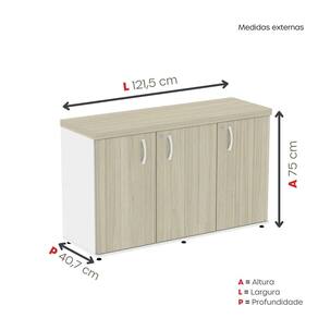 Ideal para escritórios, salas de reunião ou home office. Acabamento da Porta: BP Acabamento da Prateleira: BP Acabamento dos Pés: Polipropileno Ambiente Principal: Escritório Armário Suspenso: Não codigo_ean: 7900288232342 Complexidade da Montagem: Média: pode ser montado por mais de uma pessoa e/ou necessite de maior conhecimento para montagem Cor: Branco/Castanheira Cor do Produto: Branco/Castanheira Cor Interna: Branco Escala de Brilho: Semi-Fosco Escala de Brilho da Porta: Semi-Fosco Escala de Brilho da Prateleira: Semi-Fosco Espessura do Tampo: 40 mm Formato do Armário: Retangular Itens Inclusos: 1 Armário e Kit Ferragens Linha ou Coleção: PE40 Manual de Montagem e Instalação: https://product-hub-prd.madeiramadeira.com.br/716117049/documents/6b877856-87af-4a04-8e19-55b6cdd16f23a3144221387017555271061887.pdf Marca: Pandin Móveis Material da Porta: MDP Material da Prateleira: MDP Material do Puxador da Porta: Poliestireno Material dos Pés: Polipropileno Material Principal: MDP Necessita Montagem: Sim Orientação do Armário: Horizontal Origem do Produto: Nacional Pés Reguláveis: Sim Peso: 38,804 kg Peso Máximo por Prateleira: 15 kg Possui Espelho: Não Possui Mesa Retrátil: Não Possui Nicho: Não Possui Pés: 06 Possui Portas: 03 Possui Prateleiras: 03 Quantidade de Armários: 1 Recomendações de Uso, Manutenção e Limpeza: Utilizar um pano levemente umedecido com água, para finalizar utilizar um pano seco. Sapatas Niveladoras: Sim Sistema de Montagem: parafuso Suporta Até (kg): 45 kg Tamanho do Armário: Baixo (Até 90cm) Tipo de Armário: Totalmente Fechado Tipo de Dobradiça/Corrediça da Porta: Aço Tipo de Puxador da Porta: Externo Marca: Não Informado