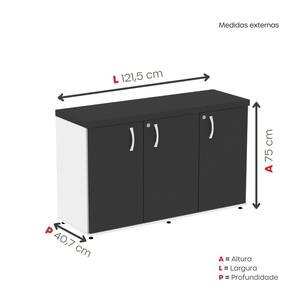 Ideal para escritórios, salas de reunião ou home office. Acabamento da Porta: BP Acabamento da Prateleira: BP Acabamento dos Pés: Polipropileno Ambiente Principal: Escritório Armário Suspenso: Não codigo_ean: 7900288220820 Complexidade da Montagem: Média: pode ser montado por mais de uma pessoa e/ou necessite de maior conhecimento para montagem Cor: Branco/Preto Cor do Produto: Branco/Preto Cor Interna: Branco/Preto Escala de Brilho: Semi-Fosco Escala de Brilho da Porta: Semi-Fosco Escala de Brilho da Prateleira: Semi-Fosco Espessura do Tampo: 40 mm Formato do Armário: Retangular Itens Inclusos: 1 Armário e Kit Ferragens Linha ou Coleção: PE40 Manual de Montagem e Instalação: https://product-hub-prd.madeiramadeira.com.br/490324394/documents/abb239cf-b278-44ad-b484-dbcb73230c69a3144221387017555271061887.pdf Marca: Pandin Móveis Material da Porta: MDP Material da Prateleira: MDP Material do Puxador da Porta: Poliestireno Material dos Pés: Polipropileno Material Principal: MDP Necessita Montagem: Sim Orientação do Armário: Horizontal Origem do Produto: Nacional Pés Reguláveis: Sim Peso: 38,804 kg Peso Máximo por Prateleira: 15 kg Possui Espelho: Não Possui Mesa Retrátil: Não Possui Nicho: Não Possui Pés: 06 Possui Portas: 03 Possui Prateleiras: 03 Quantidade de Armários: 1 Recomendações de Uso, Manutenção e Limpeza: Utilizar um pano levemente umedecido com água, para finalizar utilizar um pano seco. Sapatas Niveladoras: Sim Sistema de Montagem: parafuso Suporta Até (kg): 45 kg Tamanho do Armário: Baixo (Até 90cm) Tipo de Armário: Totalmente Fechado Tipo de Dobradiça/Corrediça da Porta: Aço Tipo de Puxador da Porta: Externo Marca: Não Informado