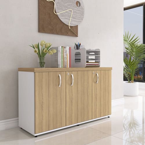 É a escolha perfeita para quem busca praticidade, organização e design sofisticado em ambientes corporativos ou home office. Com 3 portas pivotantes, oferece amplo espaço interno para guardar documentos, materiais de escritório ou objetos pessoais, mantendo tudo sempre em ordem. Fabricado em MDP de alta qualidade e acabamento resistente, garante durabilidade e fácil limpeza no dia a dia. Seu design moderno combina perfeitamente com outros móveis da linha Pandin, proporcionando elegância e funcionalidade ao ambiente.