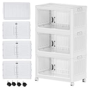 Armário Multiuso Caixa de Armazenamento Dobrável com Rodinhas 3 Andares