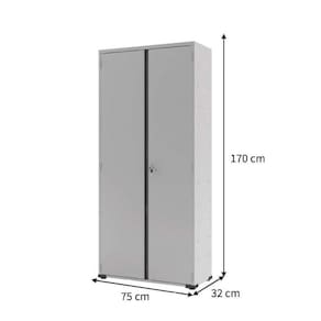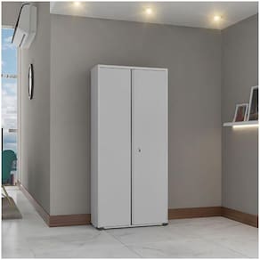 Ele é composto por 03 prateleiras reforçadas, sendo uma fixa e três reguláveis. Super resistente, suporta até 30Kg bem distribuídos por prateleira. Possui pés niveladores para melhor adaptação e um perfeito acabamento, evitando assim riscos no piso. Sua porta, com fechadura tipo Yale e puxador estampado em perfil PVC possui também reforço ômega e um prefeito acabamento que proporciona maior praticidade de uso.