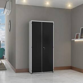 Ele é composto por 03 prateleiras reforçadas, sendo uma fixa e três reguláveis. Super resistente, suporta até 30Kg bem distribuídos por prateleira. Possui pés niveladores para melhor adaptação e um perfeito acabamento, evitando assim riscos no piso. Sua porta, com fechadura tipo Yale e puxador estampado em perfil PVC possui também reforço ômega e um prefeito acabamento que proporciona maior praticidade de uso.