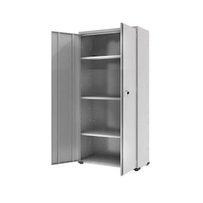 Ele é composto por 03 prateleiras reforçadas, sendo uma fixa e duas reguláveis. Super resistente, suporta até 30Kg bem distribuídos por prateleira. Possui pés niveladores para melhor adaptação e um perfeito acabamento, evitando assim riscos no piso. Sua porta, com fechadura tipo Yale e puxador estampado em perfil PVC possui também reforço ômega e um prefeito acabamento que proporciona maior praticidade de uso.