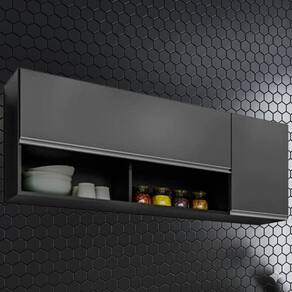 Armário Aéreo Maya, visual moderno e acabamento elegante que valorizam qualquer ambiente com praticidade! Estrutura em MDP 15 mm com acabamento BP. Composto por portas (uma sendo basculante) com dobradiças metálicas, puxadores em perfil de alumínio, nichos externos para armazenar temperos ou objetos decorativos, além de ampla prateleira interna. Produto será entregue em 01 volume.
