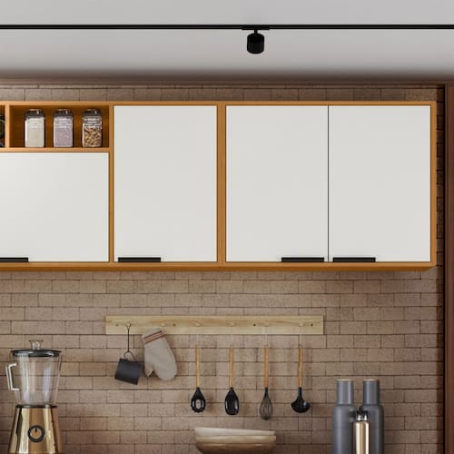 As dobradi?as refor?adas de 26mm garantem um abrir e fechar silencioso e suave, enquanto os puxadores em pol?mero preto adicionam um toque de modernidade e sofistica??o ao design do m?vel.