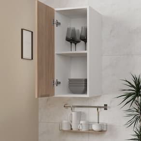 Armário Aéreo 1 Porta 30cm Ipanema Cabecasa Madeiramadeira Acácia/Branco - Branco | Marrom
