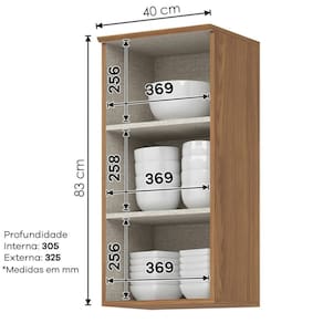 Aereo 1 Porta 40 cm Requinte combina modernidade e versatilidade, criando um ambiente charmoso e acolhedor com seus tons amadeirados. Estrutura 100% MDP de 15mm (fundo em MDF de 3mm). Porta com dobradiças metálicas de 25mm com fechamento suave e puxadores em alumínio. A pintura UV texturizada que proporciona um acabamento sofisticado e fácil de limpar, 2 prateleiras suportando 8 kg cada, permitindo a organização de utensílios com . Este móvel chegará na sua casa separado em 01 volume.