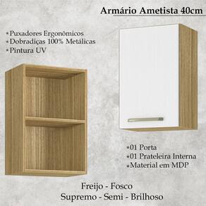 O Armário 1P 40cm Ametista, produzido em MDP de 15 mm, madeira reconstituída provinda de reservas manejadas para este fim, é um produto ecologicamente correto. Com uma porta onde são utilizadas dobradiças 100% metálicas que garantem facilidade e segurança no abrir e fechar das portas. Dispõe de uma prateleira interna, para melhor organizar os utensílios. O puxador é ergônomico em plástico resistente (poliestireno), ambos processos com secagem em luzes UV. Um produto que certamente irá ajudar na organização de sua cozinha.Este móvel chegara em sua casa separado em 01 Volume.