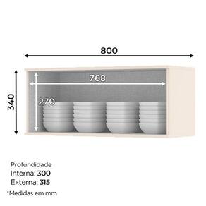 Armário Aéreo 1 Porta Basculante 80 cm Évelin Off White Henn