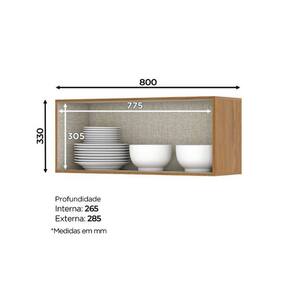 O aéreo 01 porta basculante tem 330mm de altura, 800mm de largura, 285mm de profundidade, com uma porta e uma prateleira interna é perfeito para organizar sua cozinha com estilo, transformando o ambiente.