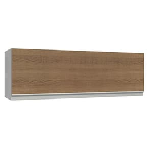A estrutura é em branco e a porta no tom amadeirado Rustic, acrescentando um toque elegante ao ambiente. O puxador cinza em perfil de alumínio, no estilo cava, completa o design com um toque moderno e discreto.