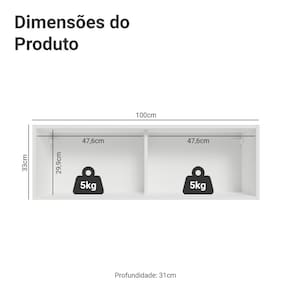 - Peso suportado: 10kg