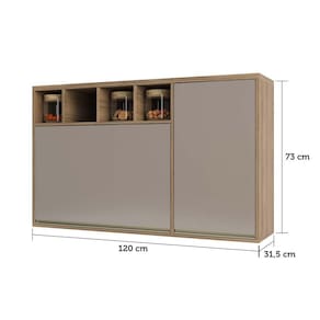 Armário Aéreo 120 cm 1 Porta de abrir 1 Porta Basculante e Nicho Superior Mel Luciane Móveis. O Armário Aéreo com 120 cm Mel foi desenvolvido aliando beleza e praticidade ao seu ambiente. Conta com 1 porta de abrir, 1 porta basculante com pistão a gás 80N, 2 prateleiras interna, puxador em alumínio gola. Acompanha sistema para fixação na parede.