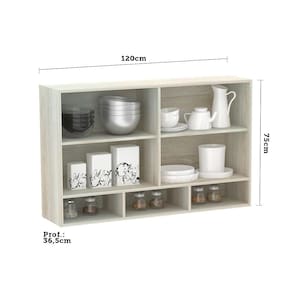 Desenvolvido com materiais de altíssima qualidade, o Armário Aéreo 120 cm 2 Portas com Nicho Agatha Luciane Móveis oferece excelente distribuição de espaço interno. Dobradiças Slowmotion com amortecedor incorporado para fechamento suave das portas e puxadores tipo concha PS Cobre.