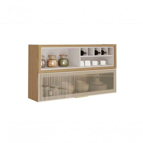 Armário Aéreo 120cm 1 Porta Horizontal Vidro E Nicho Adega New Porto - Itatiaia Freijó/off White