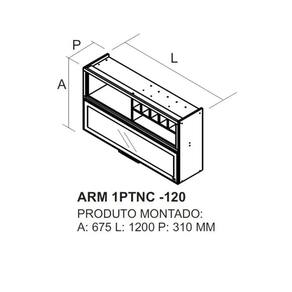 Armário Aéreo 120cm 1 Porta Horizontal Vidro E Nicho Adega New Porto - Itatiaia Freijó-off White