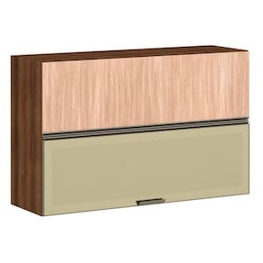 Armário Aéreo 120cm 2 Portas Basculantes Misto Com Vidro Reflecta Bronze Jade Luciane Móveis Nogueira Dourado Com Cumaru