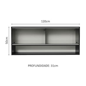 O armário possui um nicho aberto e duas portas de correr com vidro pontilhado, adicionando um toque de classe ao seu ambiente. Sua largura é ideal para acomodar todos os utensílios e louças da sua cozinha de forma eficiente.