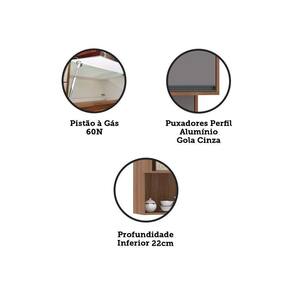 Informações Complementares: Portas Basculantes com Pistão à Gás 60N. Profundidade menor é de 22cm. Cada Base suporta 6kg. Distribua uniformemente os objetos.