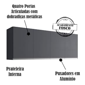 Armário aéreo 160 cm Andreia, é ideal para quem busca qualidade e sofisticação para compor sua cozinha da forma que desejar. Estrutura em MDP de 12 e 15 mm, acabamento em pintura UV (Brilho/Fosco). Composto por 04 portas articuladas com dobradiças metálicas, 01 prateleira interna para organizar seus itens de cozinha, puxadores em alumínio, acompanha kit para fixação na parede (verificar riscos de perfurações). Este armário é um módulo avulso da composição Cozinha Modulada Andreia, você pode adquirir outras peças dessa composição que são vendidas separadamente no site. Produzido com controle de qualidade e com excelente acabamento. Este móvel chegará na sua casa separado em 01 volume.