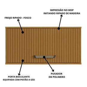 Armário Aéreo Basculante é ideal para otimizar espaço podendo ser utilizado sobre a geladeira ou fogão. Possui 1 porta basculante com acabamento ripado sendo impressão no MDP imitando ripado de madeira, deixando o ambiente elegante e moderno, dobradiças reforçadas de 35mm e pistão a gás permitindo uma abertura mais suave que mantém a porta suspensa, além do puxador bronze em polímero. Sua estrutura em MDP 15mm maior resistência e com proteção. A escolha perfeita para quem busca aliar praticidade e estilo em um único produto, tornando-se um destaque em qualquer ambiente. Este móvel chegará em sua casa separado em 01 volume.