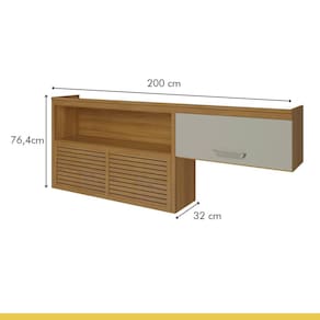 O armário aéreo 2 Portas e Nicho Princesa Nesher 200 cm 100% MDF tem design contemporâneo, robusto e é muito pratico. Inspirado em cozinhas planejadas, está disponível em módulos, permitindo composições variadas, projetos exclusivos, conforme o espaço e o gosto do consumidor. Projetado para proporcionar praticidade e funcionalidade no uso diário, produzido com matérias prima de alto nível e ferragens tecnológicas de última geração. Todo o projeto foi pensado para embelezar sua cozinha com muita praticidade no uso e muita qualidade e durabilidade no dia a dia. Acabamento da Prateleira: Impressão Escala de Brilho da Prateleira: Semi-Brilho Acabamento da Porta: Impressão Escala de Brilho da Porta: Semi-Brilho Material do Puxador da Porta: ABS Ambiente Principal: Cozinha codigo_ean: 7908506228146 Complexidade da Montagem: Média: pode ser montado por mais de uma pessoa e/ou necessite de maior conhecimento para montagem Cor: Freijó/Off White Cor do Produto: Freijó/Off White Cor Interna: Freijó Escala de Brilho: Semi-Brilho Informações Complementares: O armário aéreo de 200cm, foi projetado com uma porta articulada ripada, que traz aconchego, grande beleza e harmonia ao conjunto. - Modernas portas com abertura basculante e pistão a gás. - Modernos puxadores de ABS na cor gold, beleza, qualidade e durab Itens Inclusos: 1 Armário, Manual de Montagem e Kit Ferragens Linha ou Coleção: Princesa - Nesher Manual de Montagem e Instalação: https://product-hub-prd.madeiramadeira.com.br/653627/documents/5b6117b6-b06b-4e22-87c4-154de3e40a19onesherprincesa200cm100mdf.pdf Material da Dobradiça/Corrediça da Porta: Metálica Material da Porta: MDF Material da Prateleira: MDF Montagem Flex: Não Necessita Montagem: Sim Origem do Produto: Nacional Peso: 34,2 kg Peso Máximo por Prateleira: 15 kg Possui Espelho: Não Possui Possui Pés: Não Possui Portas: Sim Possui Prateleiras: Sim Produto Montado: Sim Recomendações de Uso, Manutenção e Limpeza: Limpar com pano macio e levemente umedecido. Não utilizar solventes a base e de inflamáveis. Não utilizar produtos abrasivos. Sapatas Niveladoras: Não Sistema de Montagem: Parafusos, cavilhas e minifix Suporta Até (kg): 30 kg Tipo de Dobradiça/Corrediça da Porta: Metálica Tipo de Puxador da Porta: Externo
