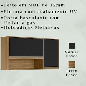 Aéreo Florença 119cm 02 portas PLLA é no estilo embutido e busca agregar charme e aconchego a sua cozinha, seu design arrojado proporciona otimização do espaço. Produzido em MDP bio-sustentável de 15 mm conta ainda com pistão a gás, dobradiças metálicas e puxadores perfil de PVC, que proporcionam uma maior segurança para abertura da porta. Este móvel chegará em sua casa separado em 01 volume.