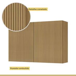 Armários aéreos 100% MDF com design moderno e acabamento canelado. Puxadores embutidos nas portas, dobradiças slowmotion para abertura suave e prateleiras espaçosas. Estrutura resistente com proteção contra umidade e montagem prática, garantindo durabilidade e excelente acabamento
