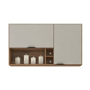 O Armário Aéreo de 120cm da Firenze possui design contemporâneo e sofisticado, além de ser um produto versátil por se adaptar em qualquer ambiente. Fabricado em MDP e com acabamento em pintura UV, é durável e resistente. Seu diferencial está nos dois nichos pequenos que servem como adega para armazenar garrafas, além do excelente espaço interno com duas prateleiras.