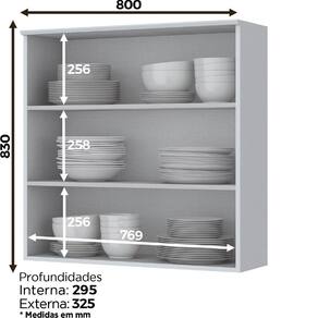 Características: Dobradiças de 35 mm com amortecimento Armário de cozinha em MDF Puxadores em zamac 2 Portas