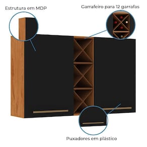 O Armário Aéreo Duplo Com Garrafeiro 1,20m Favorita é a solução. Ele tem duas portas de abrir, duas prateleiras. É o armário ideal para aproveitar os espaços, organizar os utensílios de sua cozinha e deixar o lugar mais bonito e atraente. Aproveite e utilize outros produtos da linha "Favorita" para renovar sua cozinha com design moderno e elegante!/ DIMENSÕES: A = 73,2 cm/ L = 120 cm/ P = 31,3cm/ NOME: Armário Aéreo com Garrafeiro Favorita/ MARCA: Zanzini/ COR: Natura / Preto/ MATERIAL: MDP 15 mm/ ACABAMENTO: UV-Verniz/Texturizado UV-Verniz/ TIPO DE ACABAMENTO: Brilho / Fosco/ PORTAS: 2/ TIPO DE PORTA: Com dobradiças/ PRATELEIRA: 2/ PUXADORES: Plástico/ DOBRADIÇAS: Metálicas 35 mm/ GARRAFEIRO: Comporta 12 garrafas / INFORMAÇÕES COMPLEMENTARES: Fabricado com painéis de madeira reflorestada e certificada/ SISTEMA DE MONTAGEM: Parafusos auto atarraxantes, cavilhas, pregos/ RECOMENDAÇÕES DE LIMPEZA: Limpar com flanela ou pano macio seco, não utilizar produtos abrasivos, desengordurantes, álcool ou qualquer outro produto químico. Não expor o produto diretamente à luz solar e à umidade/ GARANTIA: 3 meses contra defeito de fabricação/ PESO: 30kg/ Montagem não inclusa. Entregamos até a porta de entrada da casa do cliente ou até a portaria do condomínio. Marca: ZANZINI MOVEIS
