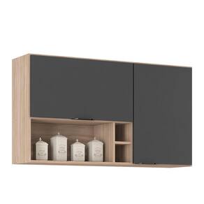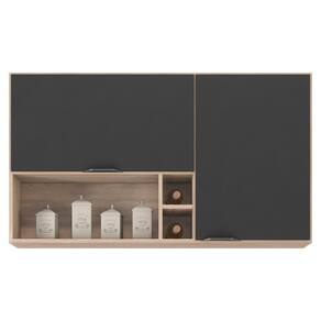 Armário Aéreo 2 Portas Com Nicho e Porta Vinhos Firenze Avena Grafito Demóbile