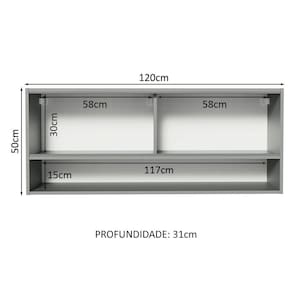 Medidas totais: - 50 cm de altura - 120 cm de largura - 31 cm de profundidade