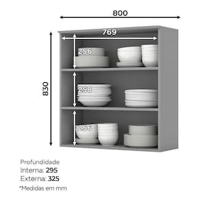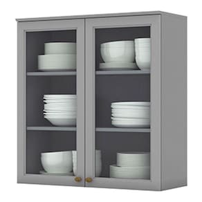 Armário Aéreo 2 Portas de Vidro 80 cm Americana Cinza Henn
