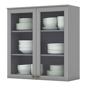 Armário Aéreo 2 Portas de Vidro 80 cm Nova York Cinza – Henn