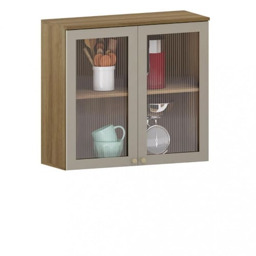 Armário Aéreo Isis Luciane 80cm com 2 Portas de Vidro ideal para sua cozinha. Oferece amplo espaço para organizar sua mobília com um design moderno. Conta com portas de vidro, dobradiças de 35mm com amortecimento, estrutura em MDP de 15mm, fundo de 3mm, puxadores de plástico e sistema de montagem por cavilhas e parafusos.
