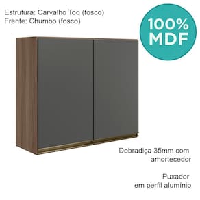 Armario Aereo 2 Portas Mdf 80 Cm Kali 12211 Carvalho Toq Chumbo Nicioli Carvalho Toq Chumbo