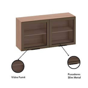 Características: Marca: Poliman Móveis Modelo: Etna 2 Portas Aéreo com prateleira Portas de bater molduradas em vidro fumê Dobradiças resistentes de 35mm com a função slow motion Puxadores em metal.