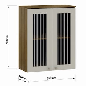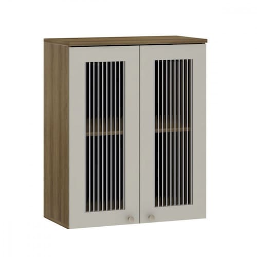 Armário Aéreo 2 Portas Vidro Canelado 80cm Isis Luciane - Bege Claro