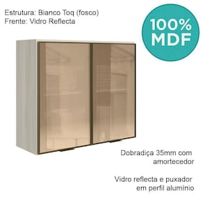 Armario Aereo 2 Portas Vidro Mdf 80 Cm Kali 1221162 Bianco Toq Nicioli Bianco Toq