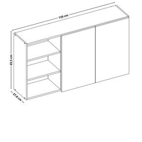 O Arm?rio A?reo Luana Aram?veis possui 120 cm de largura, 2 portas e 2 nichos, sendo fabricado em MDF de 12 e 15mm, garantindo resist?ncia e durabilidade. Conta com acabamento em verniz alto brilho e fosco, dobradi?as met?licas e fecho ao toque, proporcionando mais beleza ao ambiente.